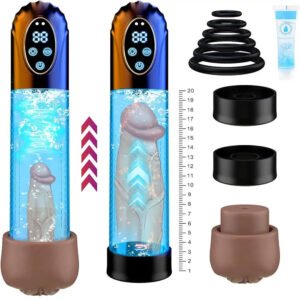 【Automatic Male Penis Pump Masturbator】- The penis pump produces a vacuum suction that dilates spongy blood vessels and increases blood flow, thus making the penis expand bigger, stronger, and stronger. The male vacuum sucking masturbator is equipped with a soft and lifelike pocket pussy. The vacuum pump sucks the air into the cup, squeezes the penis inside and expands, sucks strongly, and feels the real pumping experience.